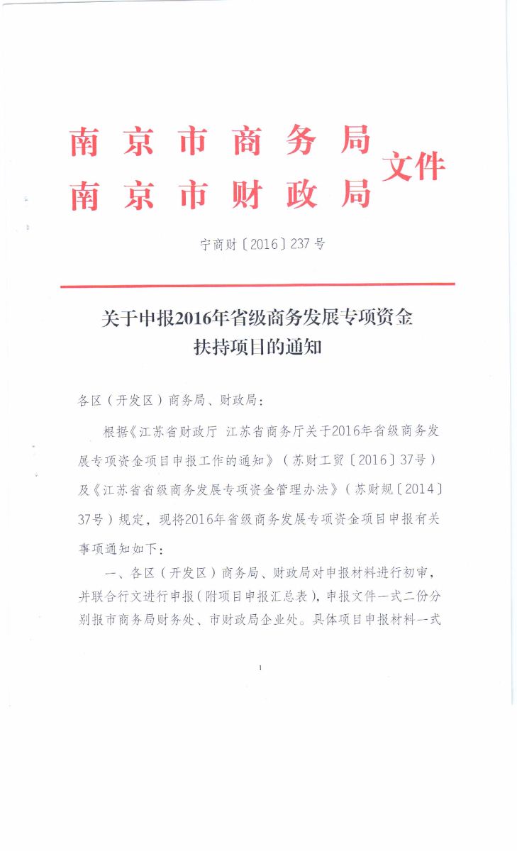 關于申報2016年省商務發(fā)展專項資金扶持項目的通知